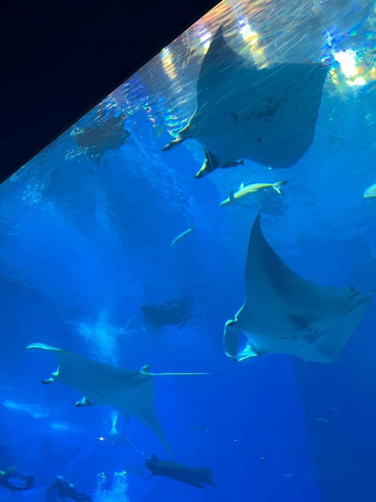 世界最大の魚であるジンベエザメや、世界初の繁殖に成功したナンヨウマンタが観察できる大迫力の巨大水槽が目を惹きます🌟