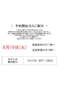 モデル犬予約の受付開始は【8月19日(火)】よりスタートとなります!