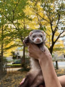 フェレットの毛色は多様で、最も多いのはセーブル(こげ茶とクリーム色の混合)で、顔に特徴的な隈取模様(隈取模様)があります🌝他にも、シナモン、アルビノ、シルバーなど様々なカラーやパターンがあります!