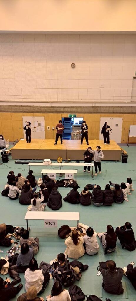 お題に対して担任の先生とクラス全員での意見が一致してたら加点が入るというゲームです。