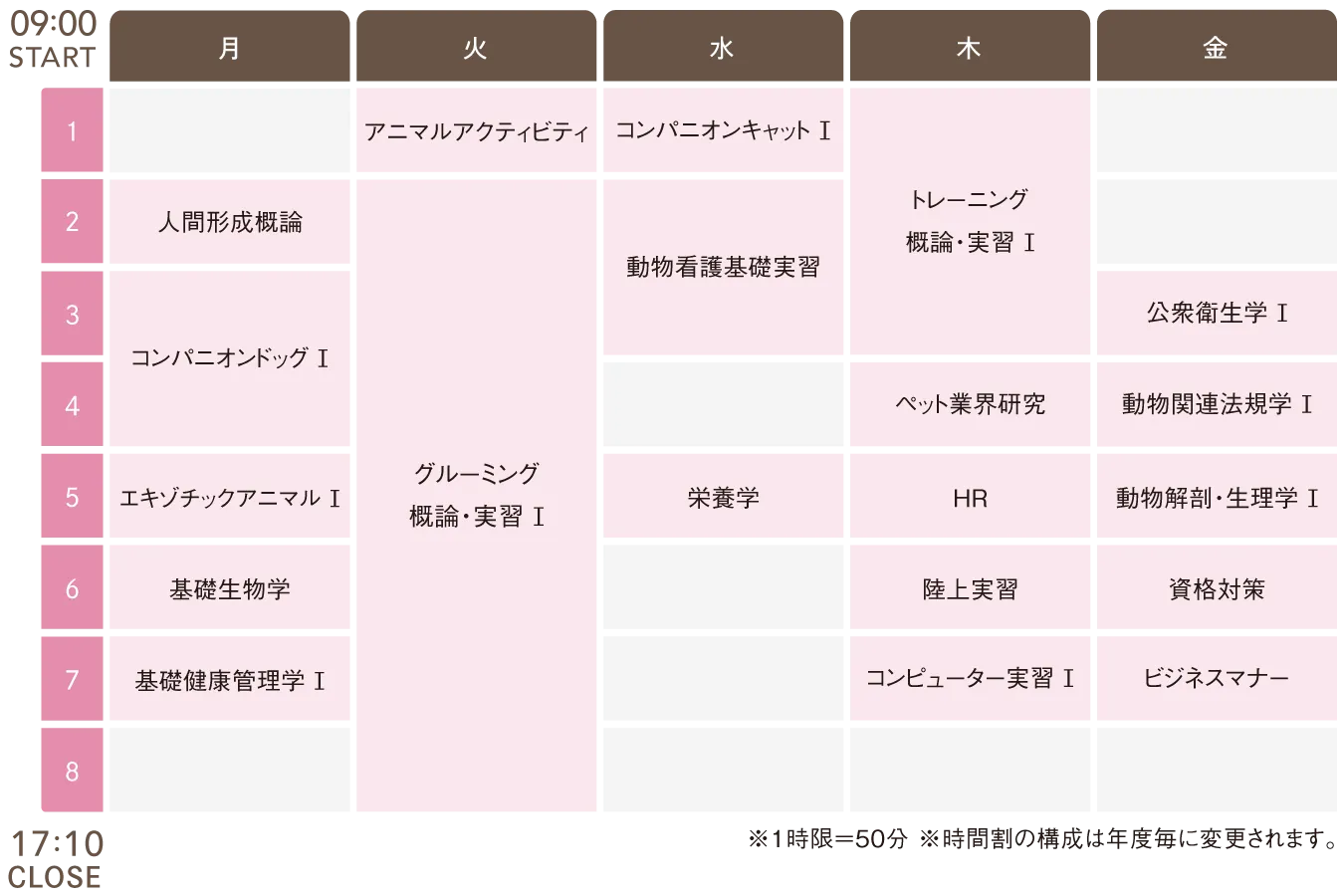 トレーニングやグルーミング、動物看護など多彩な知識や技術を学べるカリキュラムを展開しています。