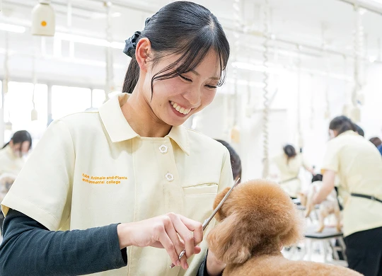 将来的な独立を目標に、サロン開業のノウハウを学習します。様々な犬種や、猫・小動物に応じた、トリマー技術の習得を目指し、幅広い活躍ができるワンランク上のトリマーを目指します。