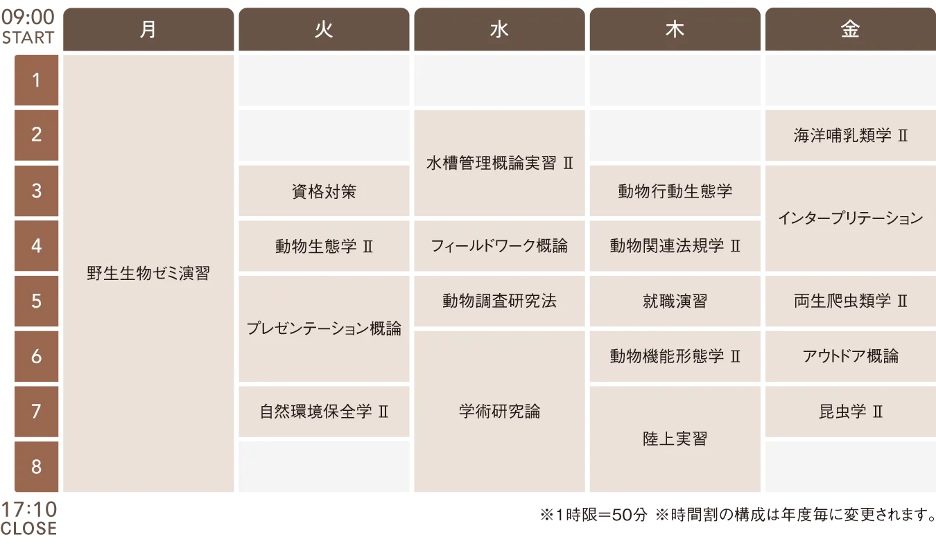 2年次時間割