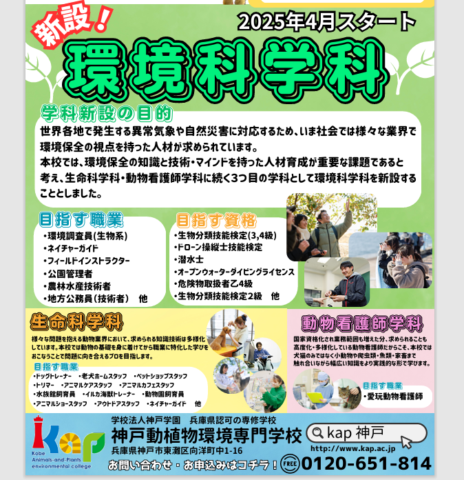 2025年より環境学科が新設されます。その他各学科オープンキャンパスにて、学科説明や職業体験等を実施しております。オープンキャンパスへのご参加は申し込みが必要となります。