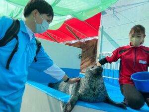 セイウチのタンポポちゃんには、選ばれた学生が「厄払い」をしてもらいました✨