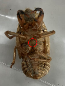 なお、上の写真の赤丸箇所に「突起」があるのが、クマゼミの抜け殻です。