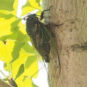アブラゼミやニイニイゼミの姿も目にすることがありますが、六甲アイランドではクマゼミが圧倒的に多いです。