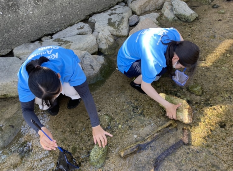 網を使い岩の隙間にいる生物を採集する、通称「ガサガサ」を授業で行うのは今回が初めてで、皆探り探りアドバイスをし合いながら観察をしておりました!