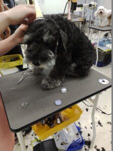 ミニチュアシュナウザーのけんちゃん。授業前は少し緊張している様子でしたが、耳の掃除をしてもらってうれしそう。