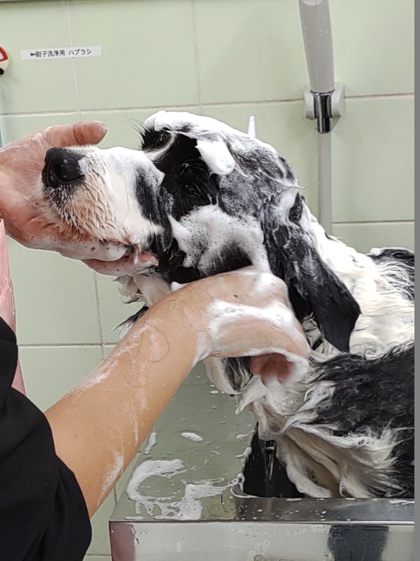 いっぱい泡を付けて、きれいに洗ってもらいました。