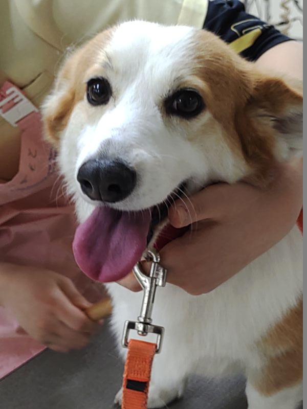 最後にコーギーのルゥちゃん。授業前から待ちきれない感じ。
