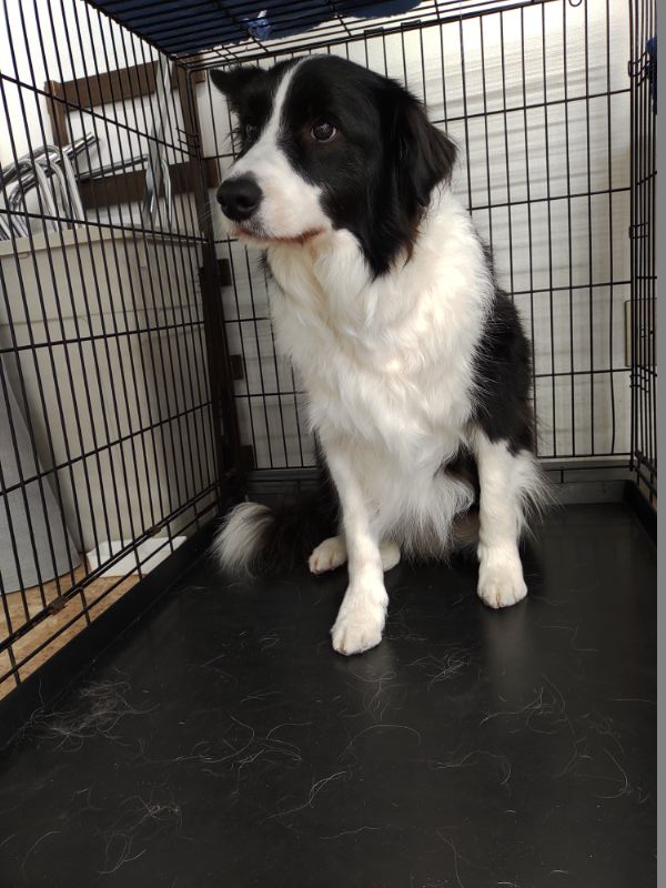 ボーダーコリーのロッキーちゃん。はやくシャンプーしてほしそう。
