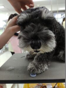 ミニチュアシュナウザーのけんちゃん。授業前は少し緊張している様子でしたが、耳の掃除をしてもらってうれしそう。