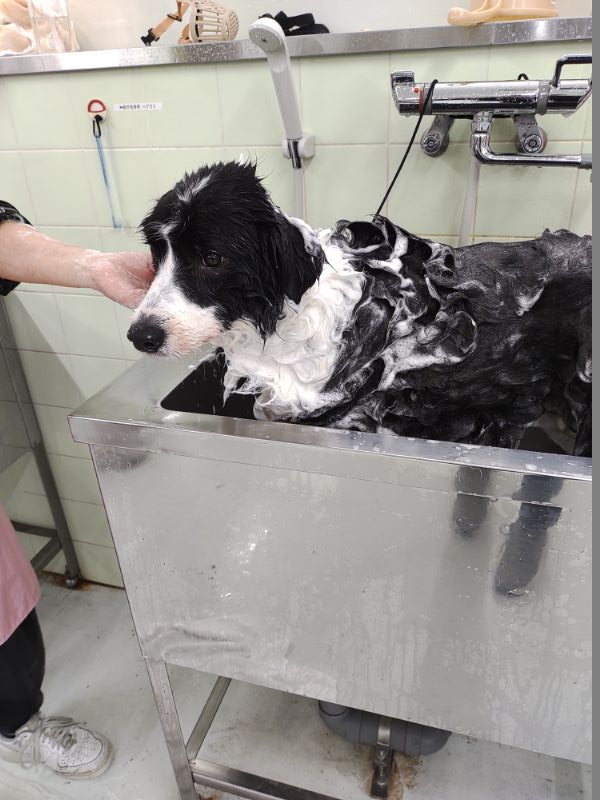 いっぱい泡を付けて、きれいに洗ってもらいました。