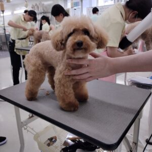 トレーニング実習犬としても来ていただいているわんちゃんですが、今日はトリミングで来校。