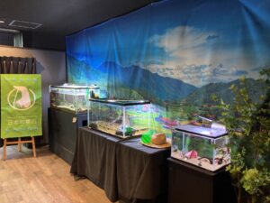 一昨年に企画した「日本の夏の自然展」にて作成した展示スペースが現在も残っており、そこで琵琶湖から採集した生き物が現在も元気に飼育されております。