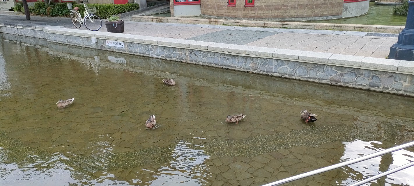 そんな身近な場所に、野生のカルガモが自然にとけこむように暮らしている様子に、思わず立ち止まってしまいました。