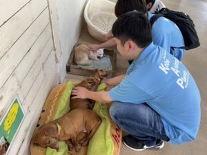 ワンちゃんと触れ合えるエリアもありました!