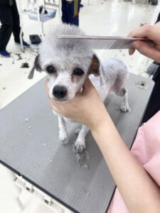 美容実習ではブリーダーさんよりお借りしたわんちゃんで行いました♪
