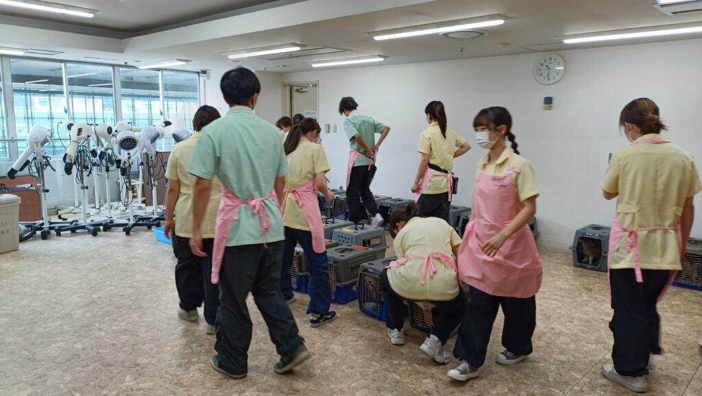 実習の時間が始まり、生徒の皆様がワンちゃんのお迎えに来られました。