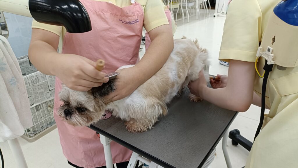 さて、トリミング実習の授業は夏休み期間中に補講を行っております。
