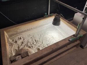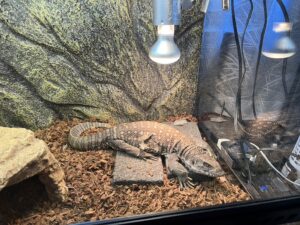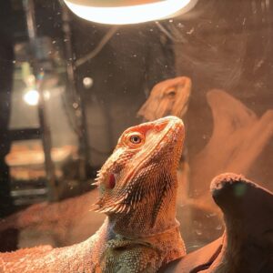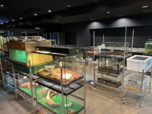 本校の両生爬虫類エリアには様々な種類を飼育しておりますが、中にはまぶしそうなライトをつけている種類がおります。
