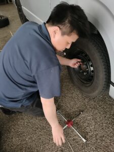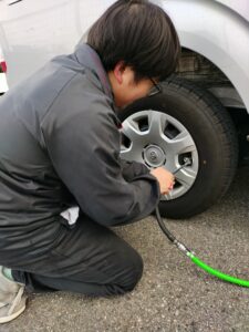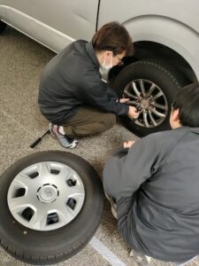 送迎職員みんなで手分けをして、どんどんと交換していき、すべてのタイヤを交換しました。