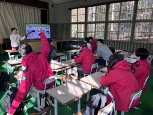 学生たちは真剣な表情で聞き入っており、
