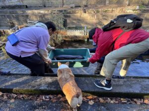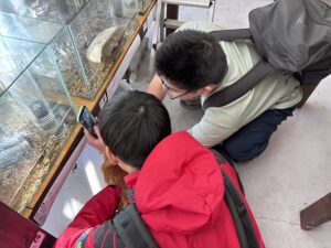 迫力満点のオオサンショウウオも間近で見ることができ、学生たちは大興奮✨