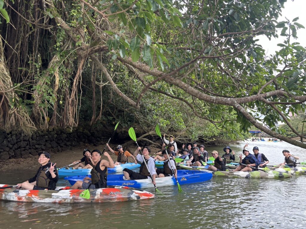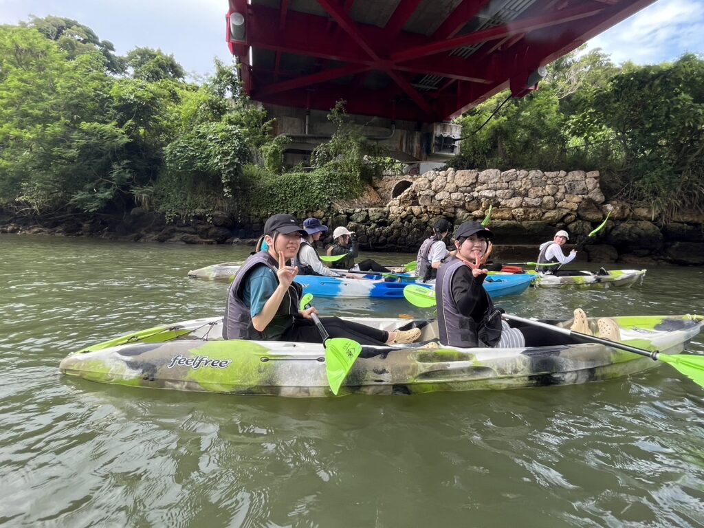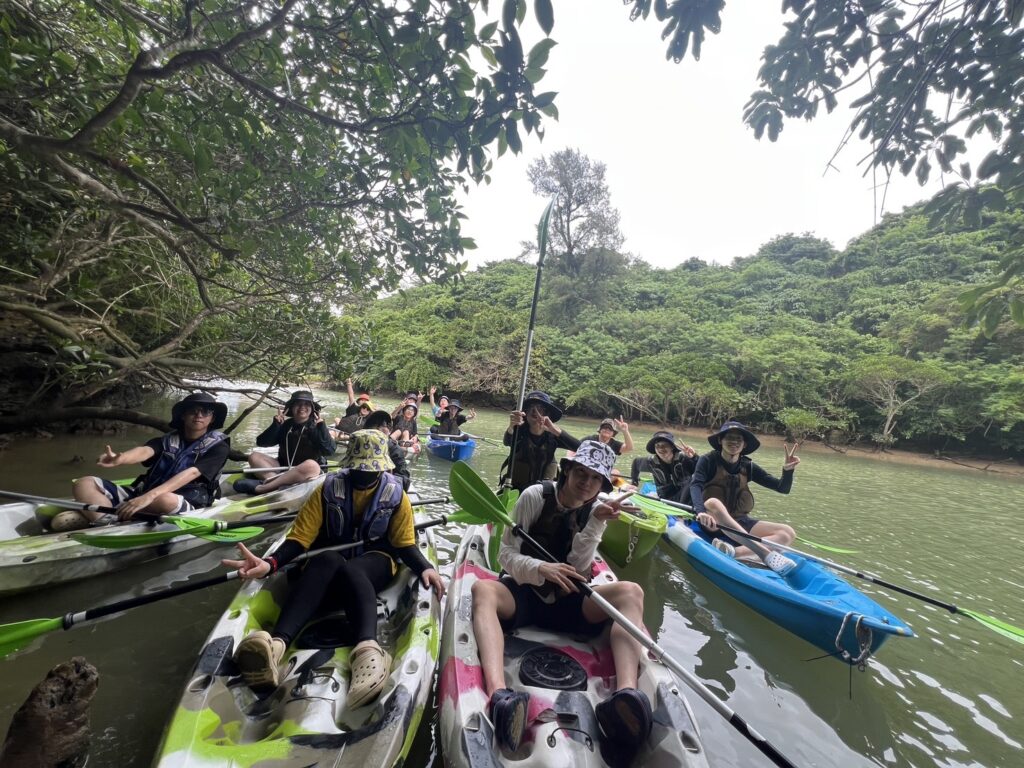 沖縄到着後、比謝川にてカヤックを行いました!