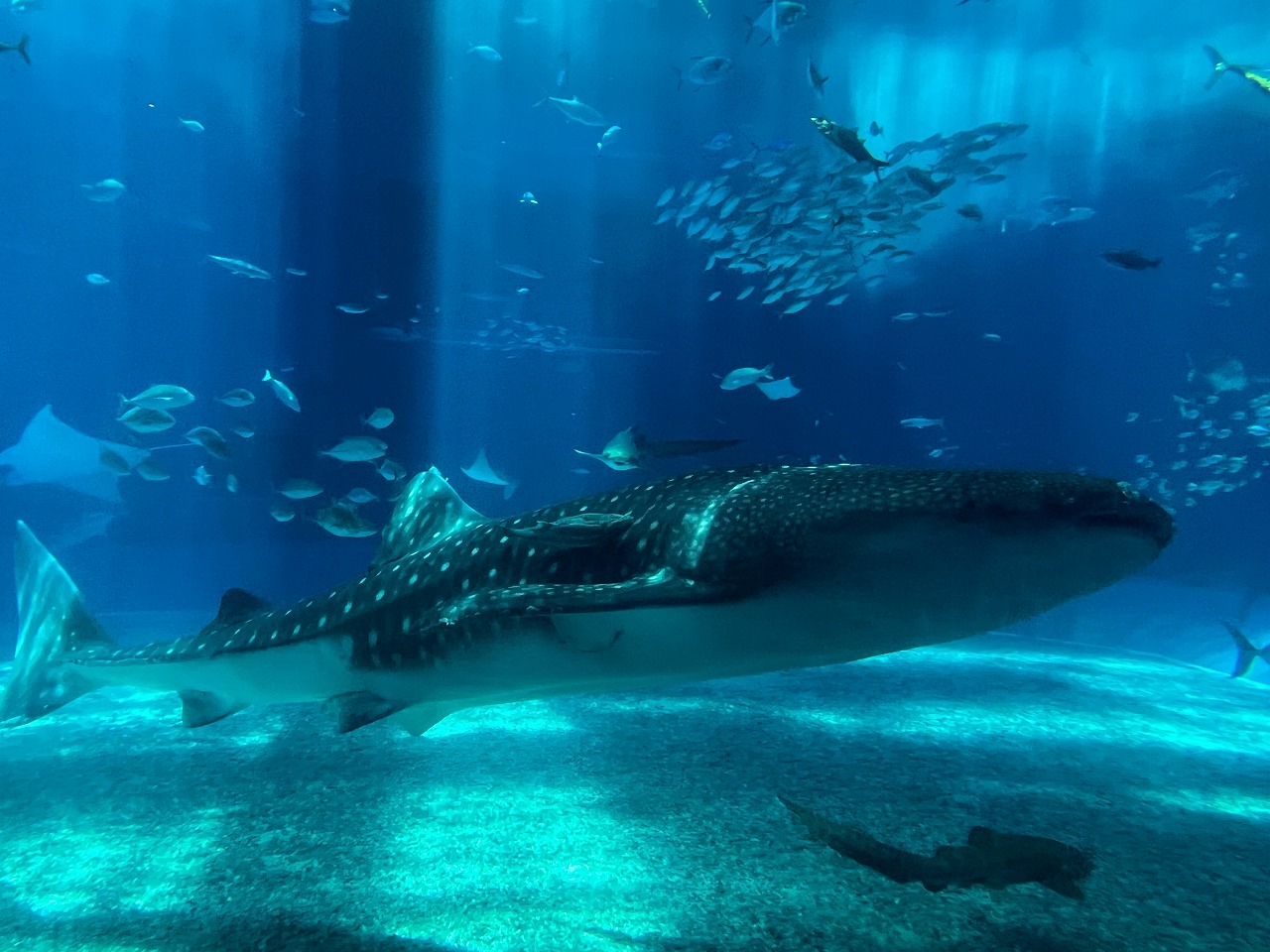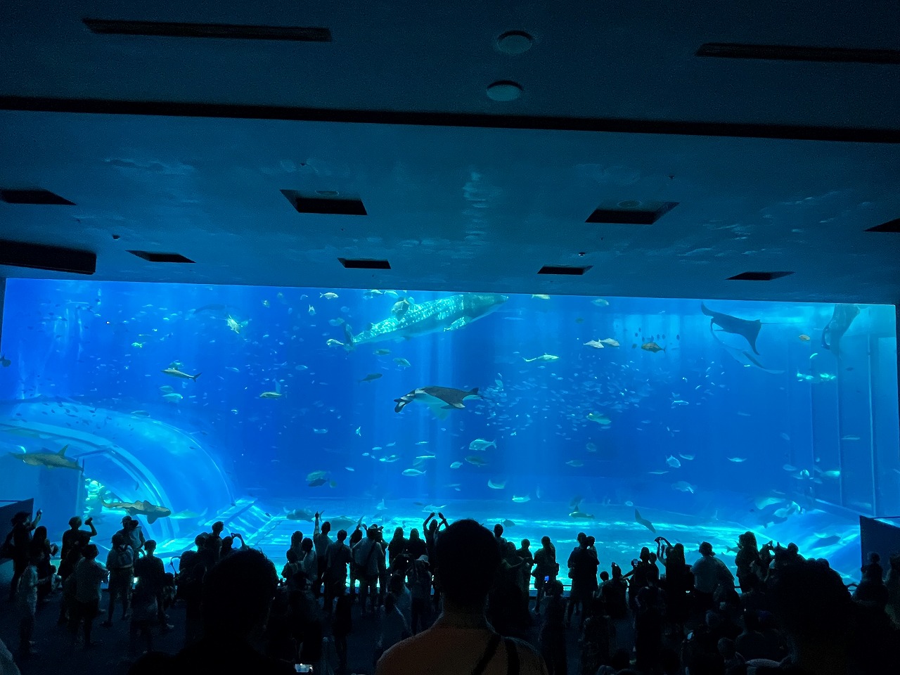 美ら海水族館では、やはり大水槽のジンベイザメやマンタはとても迫力がありましたね…