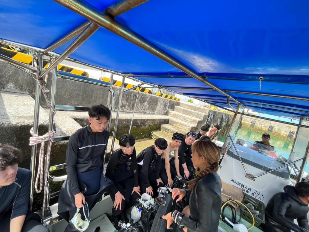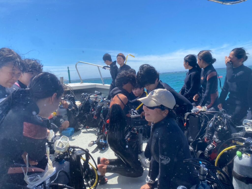 研修旅行3日目は2班に分かれて『ダイビング研修』を行ったり、