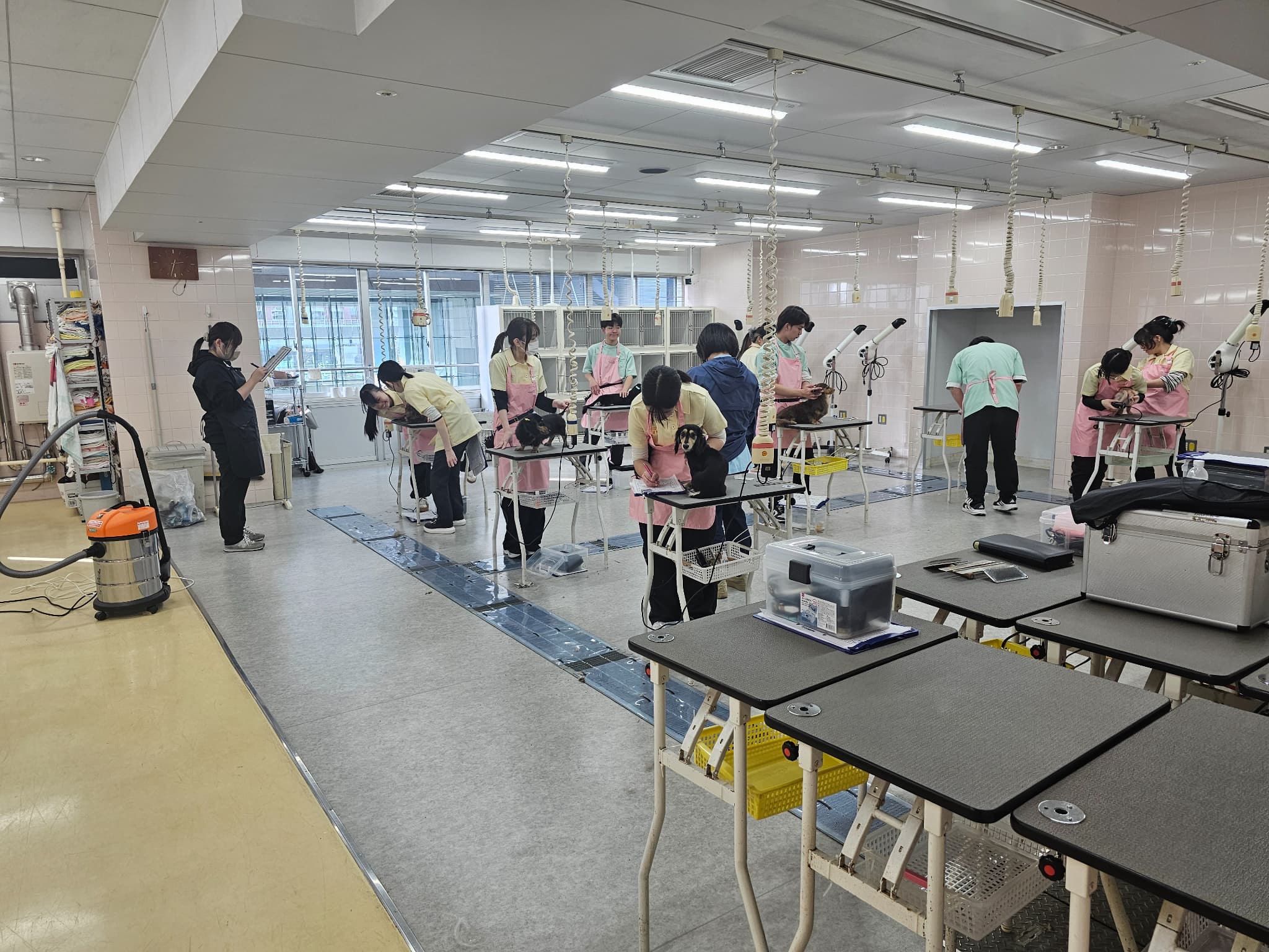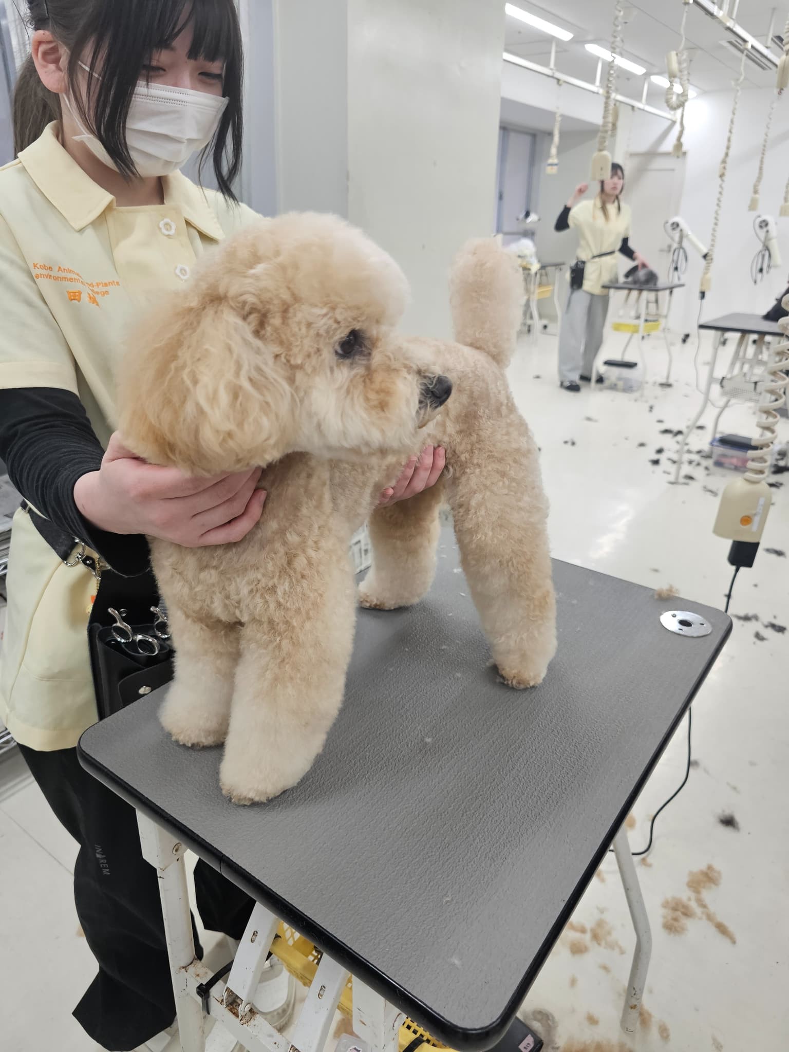 ワンちゃんたちの協力もあり、学生のトリミング技術も向上中!